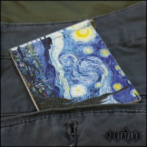 Portafoglio Uomo Slim RFID – Gancio Fermasoldi e Tasche – SGANJAFLUX (La Notte Stellata)